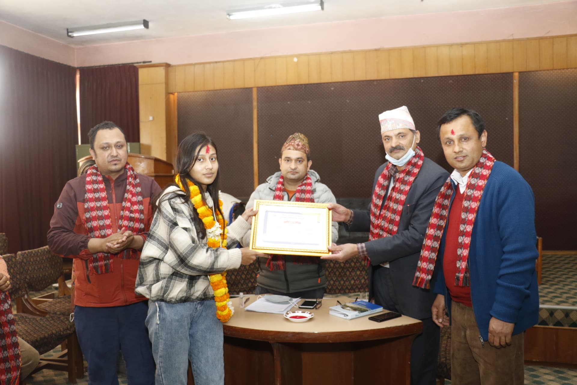 राष्ट्रिय समाचार समितिका महाप्रबन्धक ओपेन्द्र शर्मा र नेपाल पत्रकार महासङ्घका केन्द्रीय सचिव प्रकाश थापाले उहाँहरुलाई समारोहमा टीका, माला र प्रशंसापत्रद्वारा सम्मान गर्नुुभएको थियो । सो अवसरमा महाप्रबन्धक शर्माले महासङ्घ रासस शाखाले गर्ने रचनात्मक कार्यले संस्थाको सुदृढीकरणमा योगदान पुगेको बताउनुभयो । उहाँले विद्यार्थीहरुलाई सुझाव दिँदै भन्नुुभयो, “मुलुुकका विभिन्न विधाको नेतृत्वको सम्भावना बोकेका तपाईँ एसइई उत्तीर्ण विद्यार्थीलाई शाखाले भविष्यमा पनि अझ राम्रो नतिजा हासिल गर्न उत्साह प्रदान गरेको छ, तपाईँहरुले देश र समाजलाई सही बाटोमा हिँडाउन र दत्तचित्त भई अध्ययनमा विशेष ध्यान पुु¥याउनुुहुुनेछ ।”
