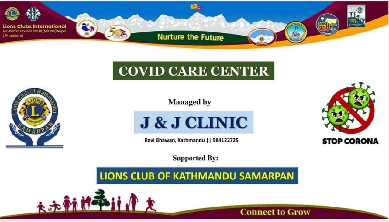 काठमाडौँ, ३ जेठ \ कोरोना सङ्क्रमित गरीब तथा विपन्न परिवारका लागि लायन्स क्लब अफ काठमाडौँ समर्पणले रविभवनमा ‘जे एण्ड जे कोभिड केयर सेन्टर’ स्थापना गरेर निःशुल्क उपचार थालिएको छ ।