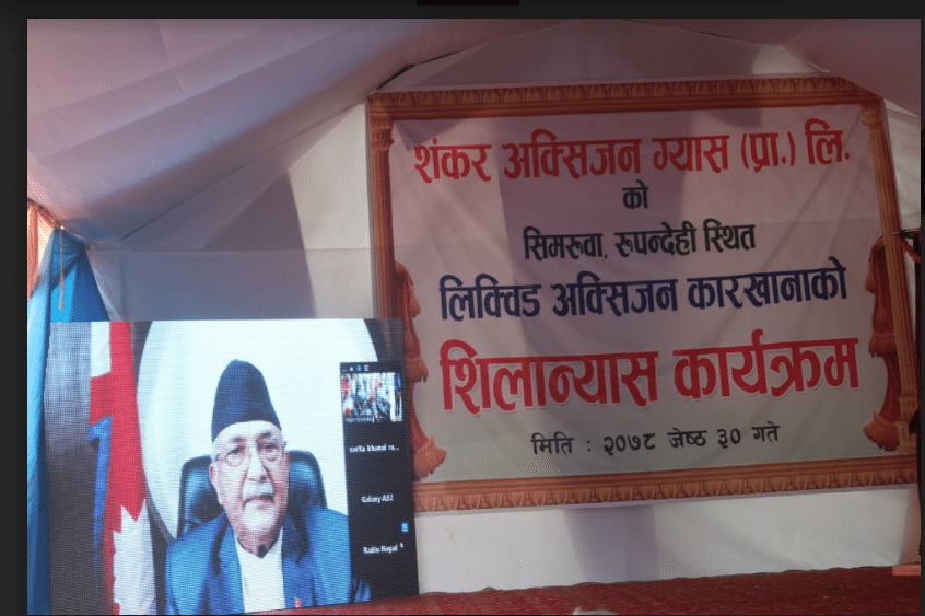 महामारीका समयमा अक्सिजन प्लान्टले पनि नपुग्ने देखिएकाले तरल अक्सिजन प्लान्ट राख्ने निष्कर्षमा सरकार पुगेको उहाँको भनाइ थियो । प्रधानमन्त्री ओलीले दोस्रो लहर उचाइमा चढिरहेका बेला तरल अक्सिजन प्लान्ट राख्ने उद्योगी शङ्कर अग्रवालको प्रयास सराहनीय एवं देशप्रति उत्तरदायी भावनायुक्त भएको बताउनुभयो ।